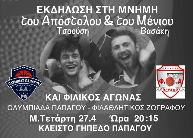 Ο παικταράς, παγκόσμιας κλάσης Γιάννης Αντετοκούμπο, από τους καλύτερους παίκτες του ΝΒΑ ήρθε στον Παπάγου σε εκδήλωση μνήμης για τους αθλητές Απόστολο Τσαούση και Μένιο Βασάκη, που 'έφυγαν' τόσο γρήγορα από κοντά μας! Την εκδήλωση πραγματοποίησε με πρωτοβουλία της η Ολυμπιάδα Παπάγου.